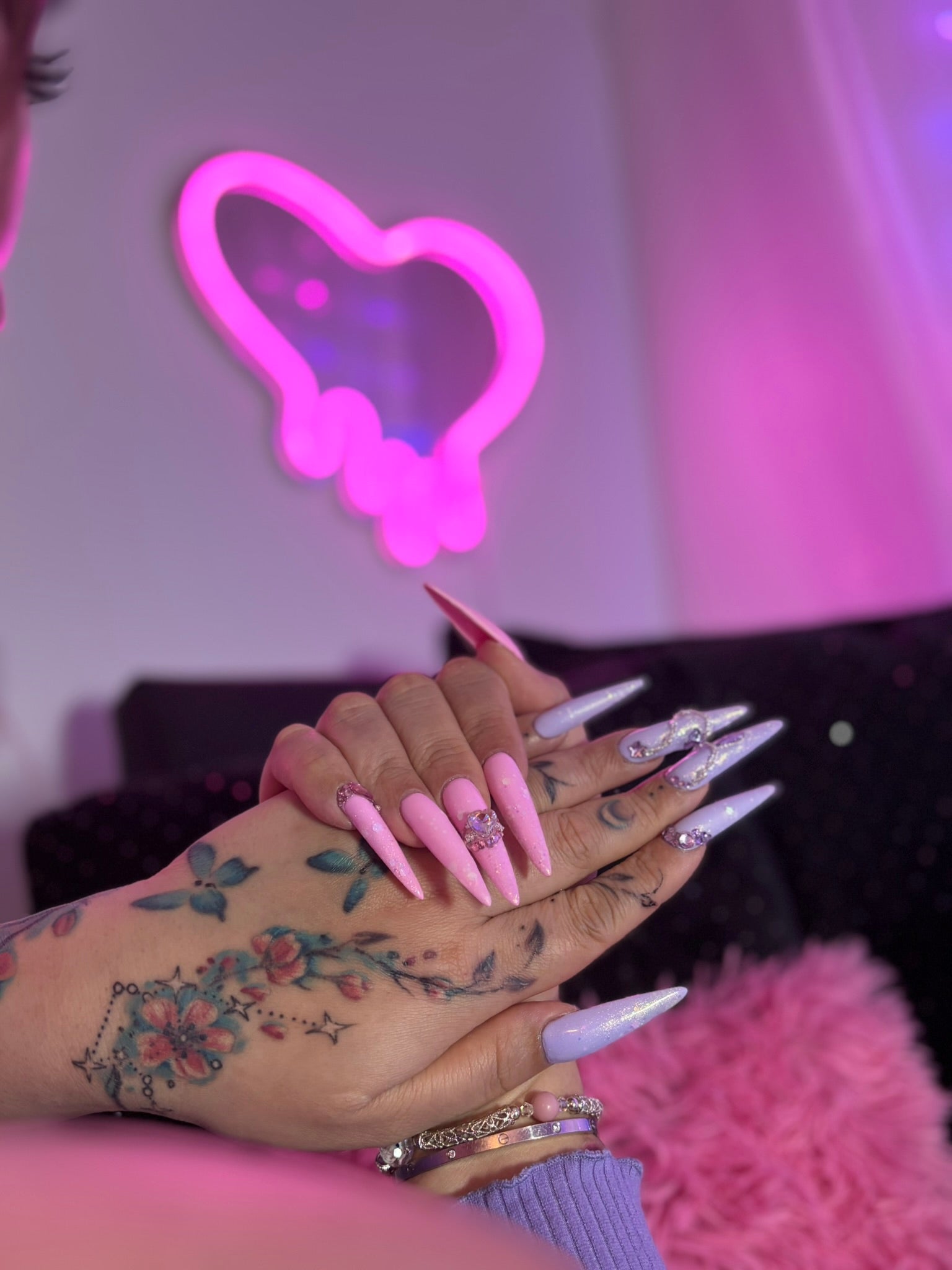 My private nail studio is your new self-care sanctuary, where every set is crafted with intention, personality, and a whole lotta glam. From XL freestyles to simple, luxurious nail moments, everything here is custom, cozy, and designed around you.